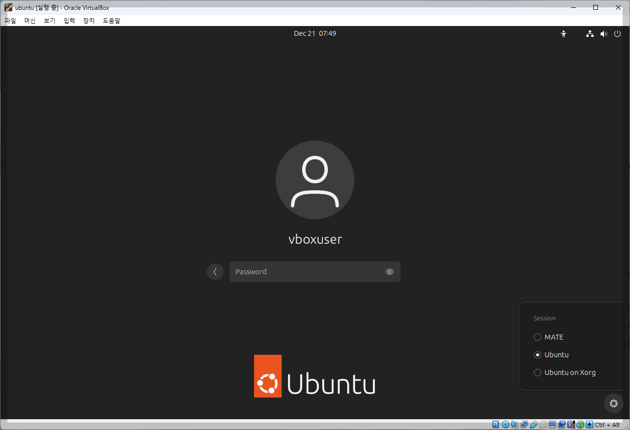- 로그인 화면에서 MATE 세션을 선택하거나,