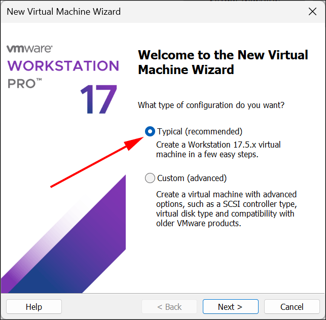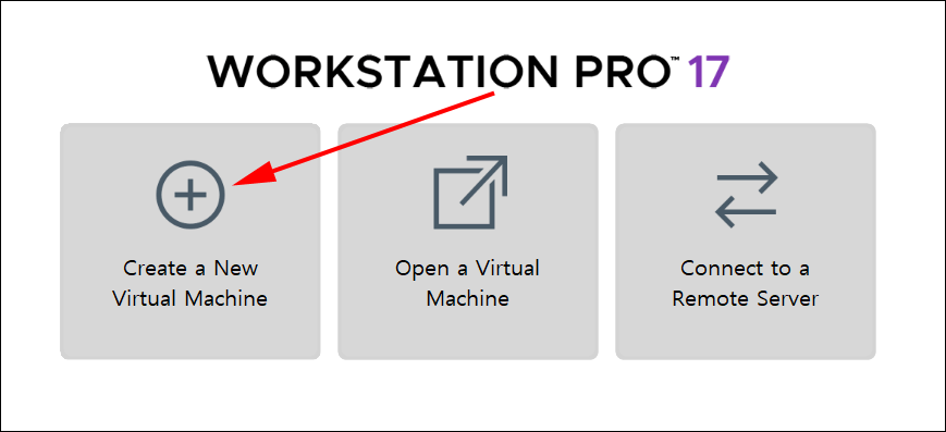 'Create a New Virtual Machine' 버튼을 선택합니다. 가상머신을 만드는 방법은 두 가지가 있습니다. 메뉴에서 생성하는 방법과 아래와 같이 [Home] 탭을 열어 생성 버튼을 선택하는 방법입니다. 여기서는 두 번째 방법입니다.