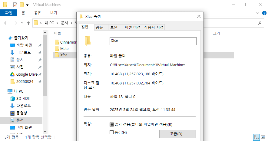 | Xfce | 간결, 초경량 | 낮음 | 저사양 PC, 경량 중시 사용자 | 10.4GB |