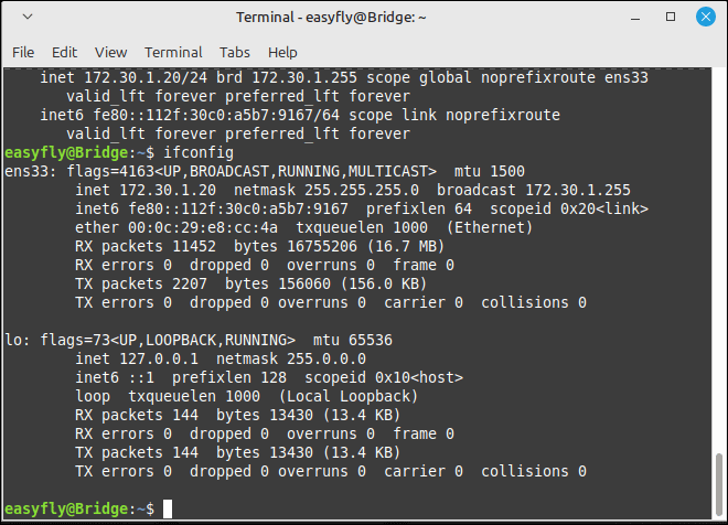 ens33 ethernet connected Wired connection 1