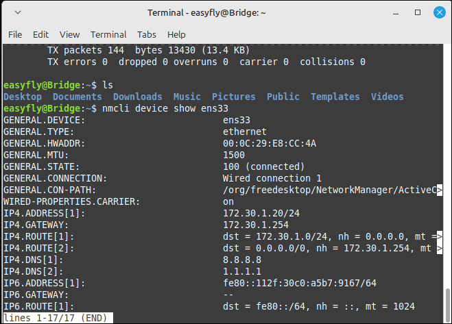 nmcli device show ens33