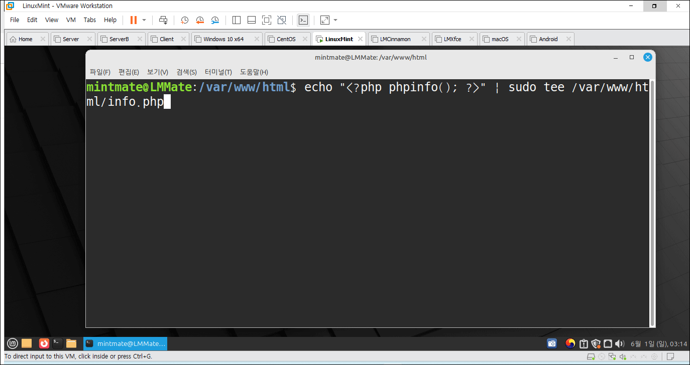 echo "<?php phpinfo(); ?>" | sudo tee /var/www/html/info.php