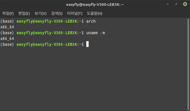 uname -m 명령어 역시 시스템의 아키텍처 정보를 반환합니다. arch 명령어와 비슷한 기능을 하지만, uname 명령어는 추가적인 시스템 정보를 제공할 수 있습니다.