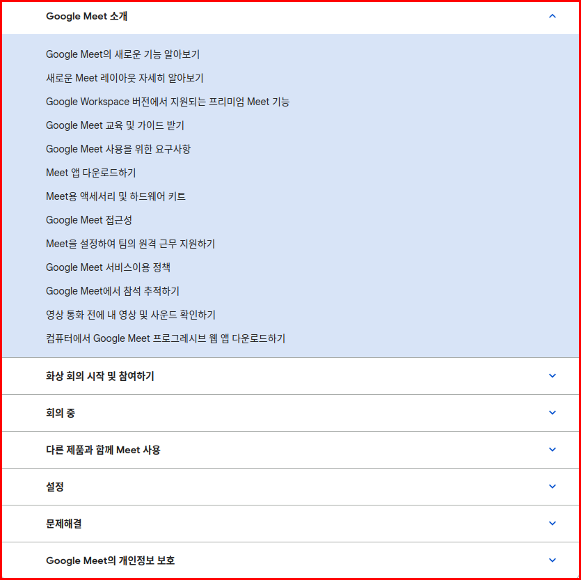 구글미트에 대한 궁금한 사항을 알아볼 수 있는 메뉴얼 페이지입니다.