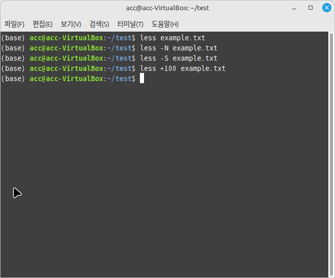 less명령어는 대용량 텍스트 파일을 효율적으로 탐색할 수 있는 강력한 도구입니다.- 검색, 스크롤, 줄 번호 표시 등 다양한 기능을 제공하며, 시스템 자원을 절약합니다.