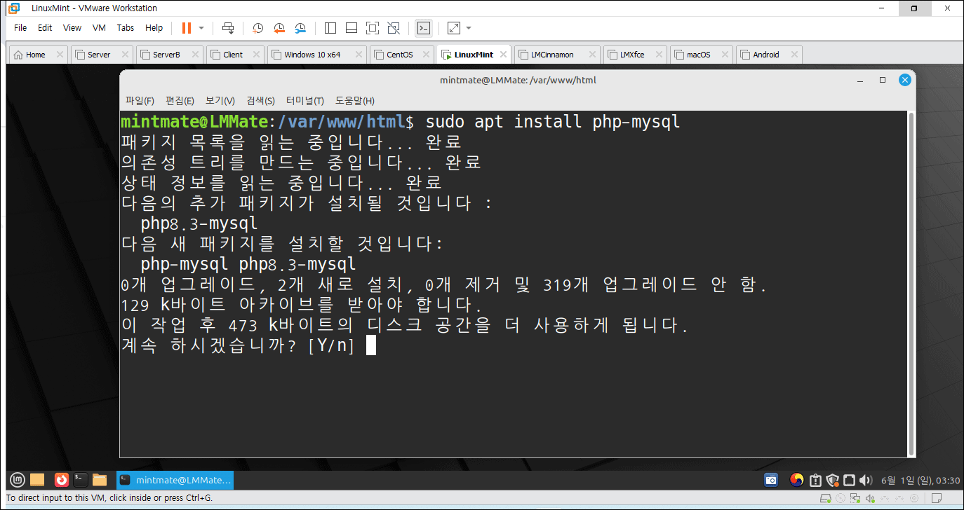 php-mysql 설치 명령어sudo apt install php-mysql -y는 PHP에서 MySQL(또는 MariaDB) 데이터베이스와 연결할 수 있게 해주는 기능(확장 모듈)을 설치하는 것입니다.아래에 구체적으로 설명드리겠습니다.✅ 이 명령어의 기능php-mysqlPHP와 MySQL/MariaDB 사이를 연결해주는 연동 모듈입니다apt install해당 패키지를 설치합니다-y사용자에게 묻지 않고 자동으로 “yes” 선택 '-y' 옵션은 자동으로 'yes'를 선택하는 것이기 때문에 자동화 스크립트에는 필요하지만 일반적으로 설치하는 경우는 불필요합니다. 진행 과정을 점검하는 의미가 있기 때문입니다.🧩 설치되는 기능 요약설치되면 다음 PHP 함수들을 사용할 수 있습니다:MySQL 접속 (옛 방식)my..